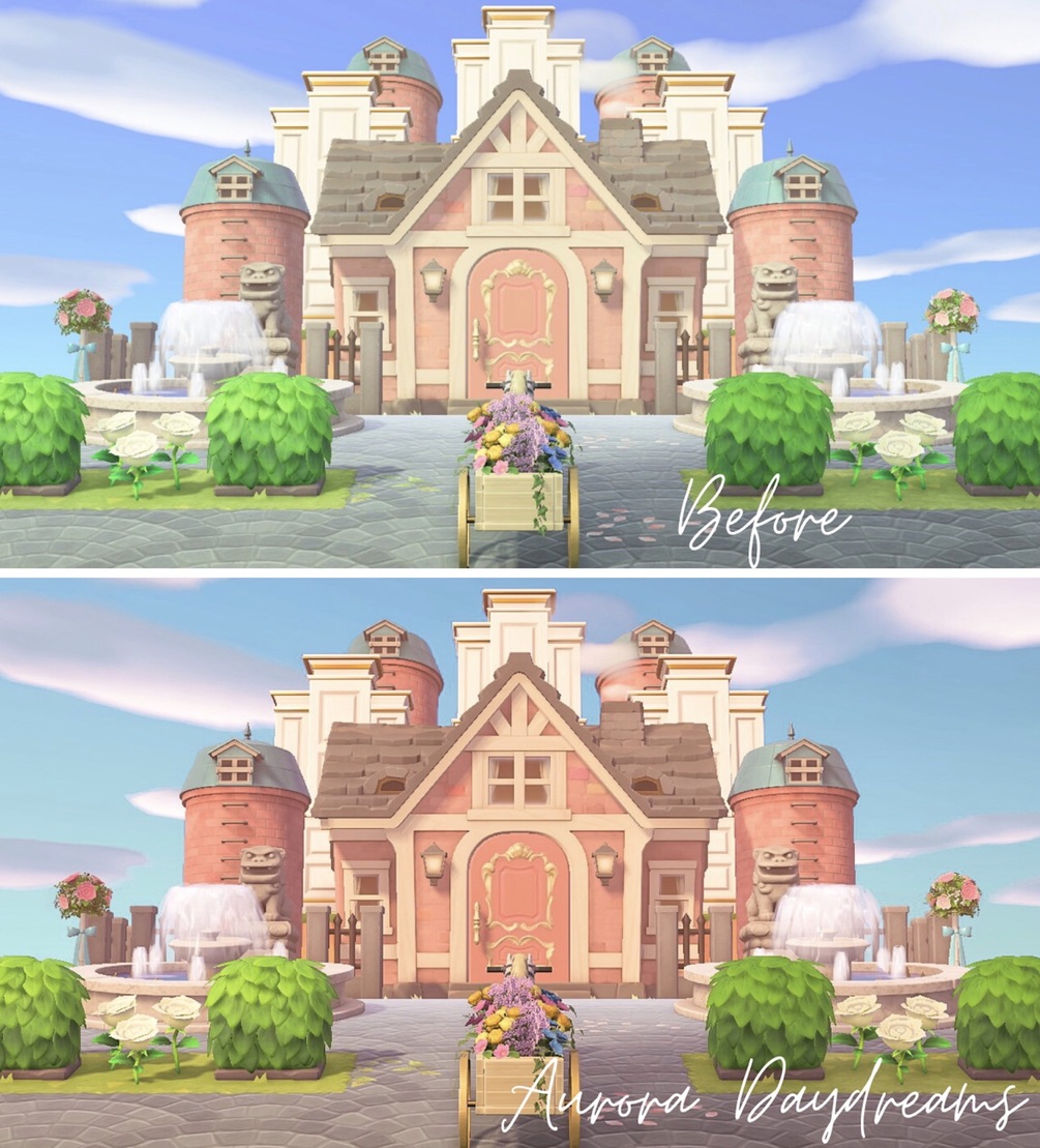 both presets accentuate turquoise and magenta tones in photos with a warm touch for aurora dreams and a cool touch for aurora daydreams. Both presets also smooth out in-game noise and pixelation. aurora dreams is perfect for nighttime photos and looks especially vivid around 8:30 PM when the sky is a little purple!